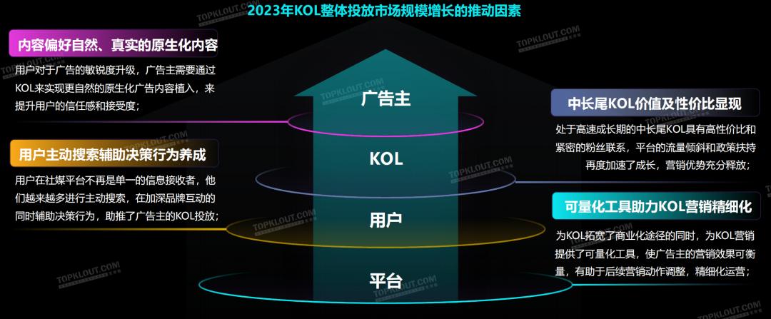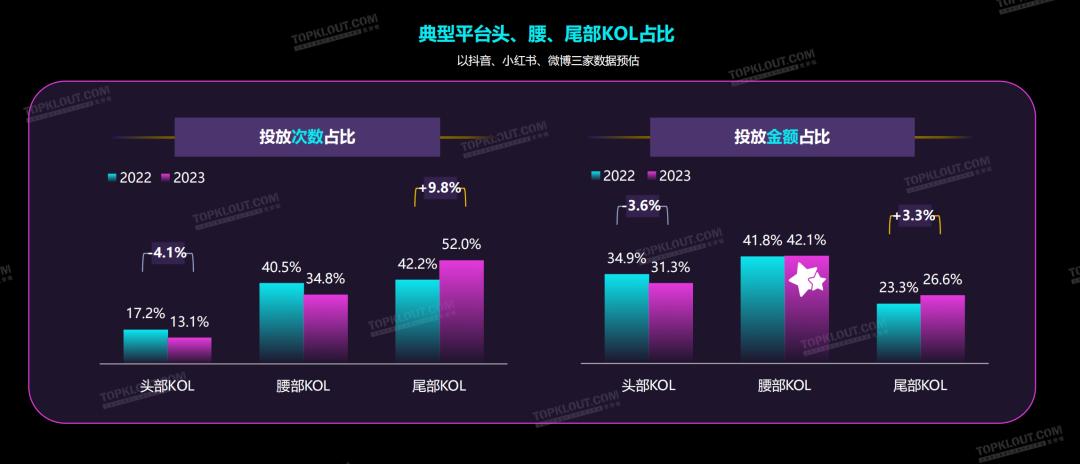 中长尾KOL处于高速增长期,性价比高,粉丝关系密切。平台的流量倾斜和政策支持再次加速增长,营销优势得到充分释放。从平台的角度来看,平台为KOL营销提供了量化工具,可以衡量广告主的营销效果,有利于后续营销动作的调整和精细化运营。