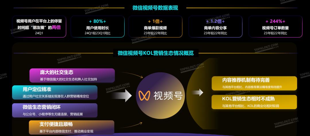 KOL生态格局尚未稳定,但随着与微信生态的结合,KOL的营销潜力已经开始释放。根据克劳锐的数据,与2022年相比,2023年视频号商单爆款视频数量翻了一番,商单数量同比增长244%。
