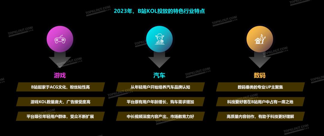 B站的 汽车和数字产业领先,延伸到生活场景,覆盖多个营销领域。 游戏、汽车、数码内容相对火爆,中长视频、低龄用户基础为其提供帮助。