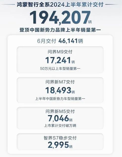 从2024年6月的销量数字来看,鸿蒙系统智行46141辆在新势力中仅次于理想汽车,其中问界M9的17241辆简直是奇迹,比5月份的15000辆更上一层楼——要知道,无论是红旗、理想等自主高端品牌,还是BBA、保时捷等国外奢侈品牌,都不可能一个月卖出55万元起的昂贵车型。