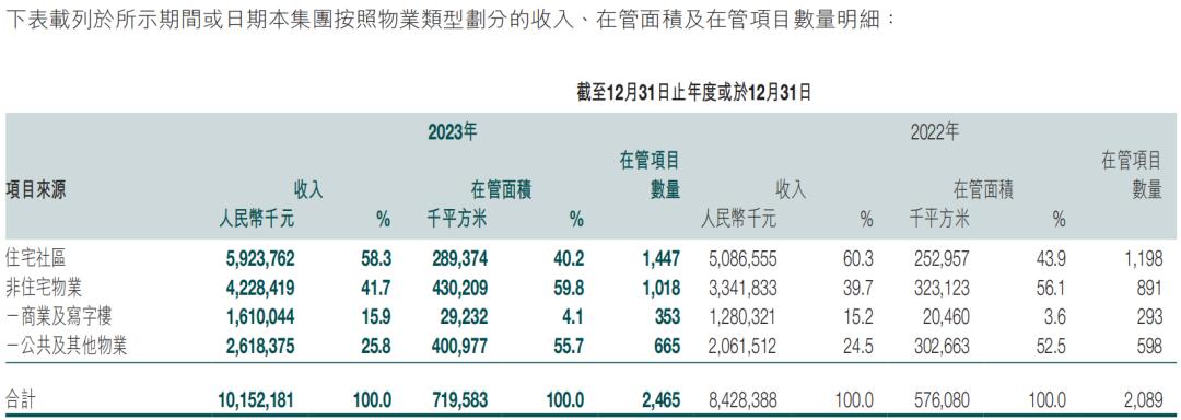 在物业公司的年报中,也可以看到新老项目的物业费差距。