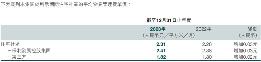 与此同时,平均物业费持续上涨。2020年,保利物业旗下项目平均物业费为2.3元/平方米/月,2023年上涨至2.41元/平方米/月,4年上涨4.8%。