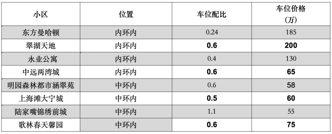 停车位比越小,小区级别越高,停车位价格越贵。