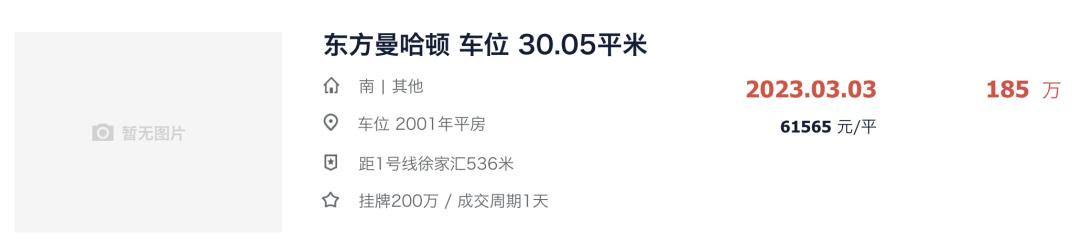 比方说,2001年徐家汇东方曼哈顿,23年成交的一个停车位,30平高达185万。