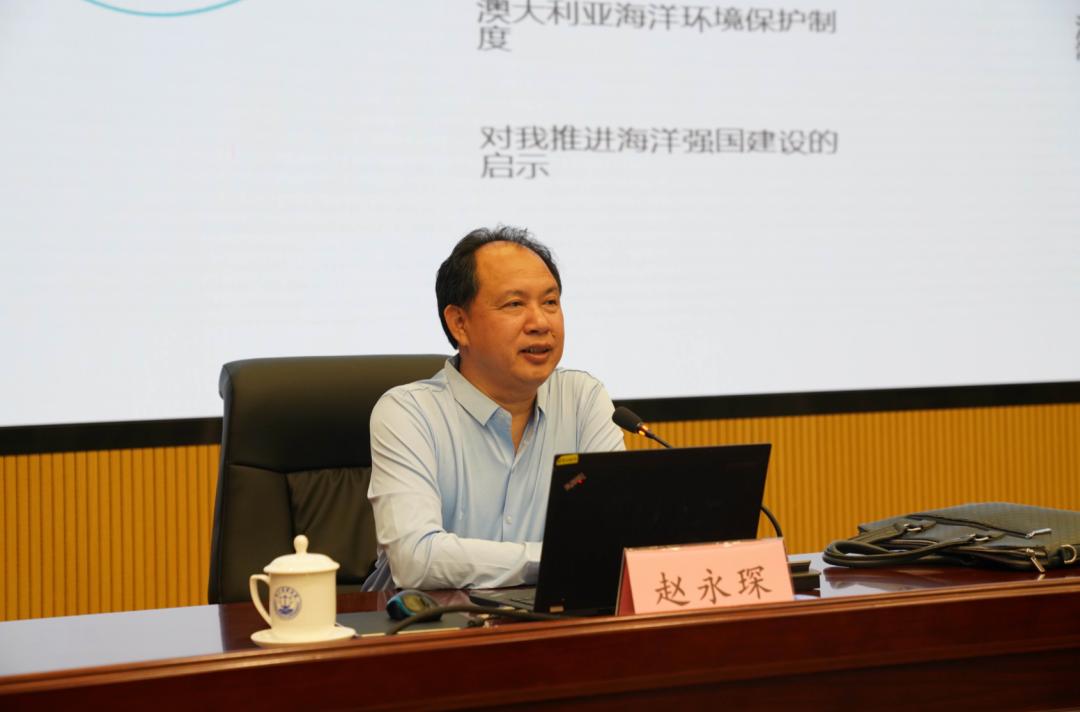 赵永琛教授从澳大利亚立法体系及其海洋法律规范、海洋执法管理机制、海洋环保体系、海洋司法管辖权、海事纠纷解决机制等方面全面系统地阐述了澳大利亚海洋法治体系建设的情况。,结合自身丰富的法律知识和工作经验,从澳大利亚立法体系及其海洋法律规范、海洋执法管理机制、海洋环保体系建设等方面进行了全面系统的阐述。对我国推进海洋强国建设的启发进行了深入分析。教学内容丰富、细致、清晰、立意深刻,对全院干警对海洋法、海洋法与海事审判相结合的更深入了解具有重要启发。