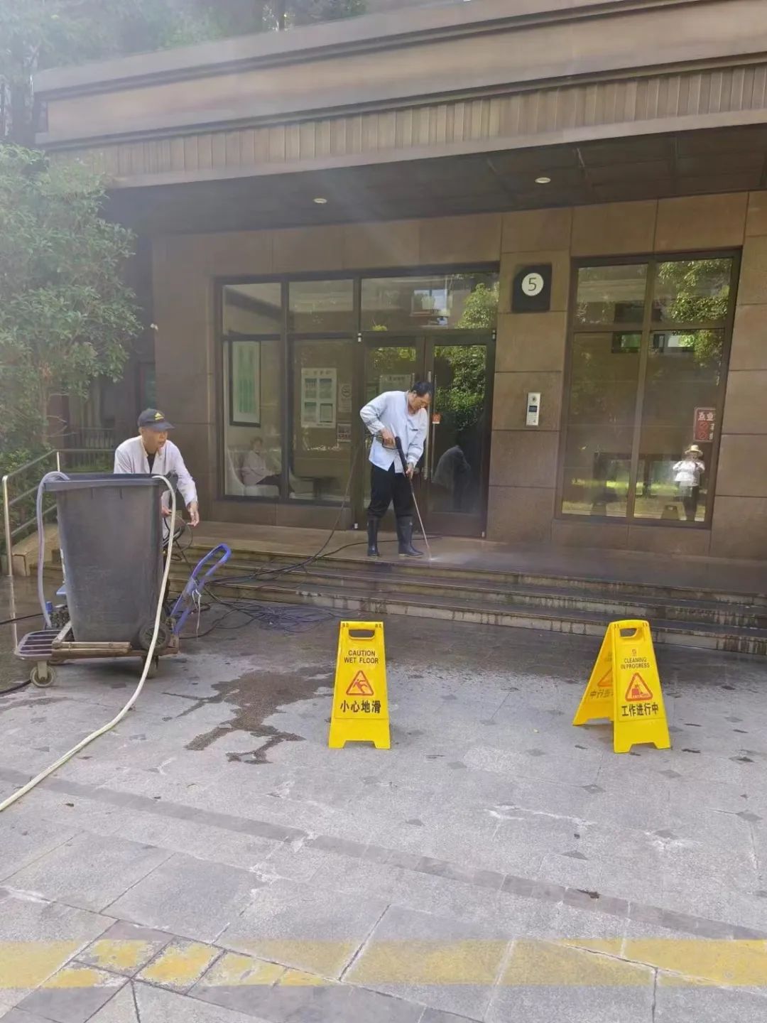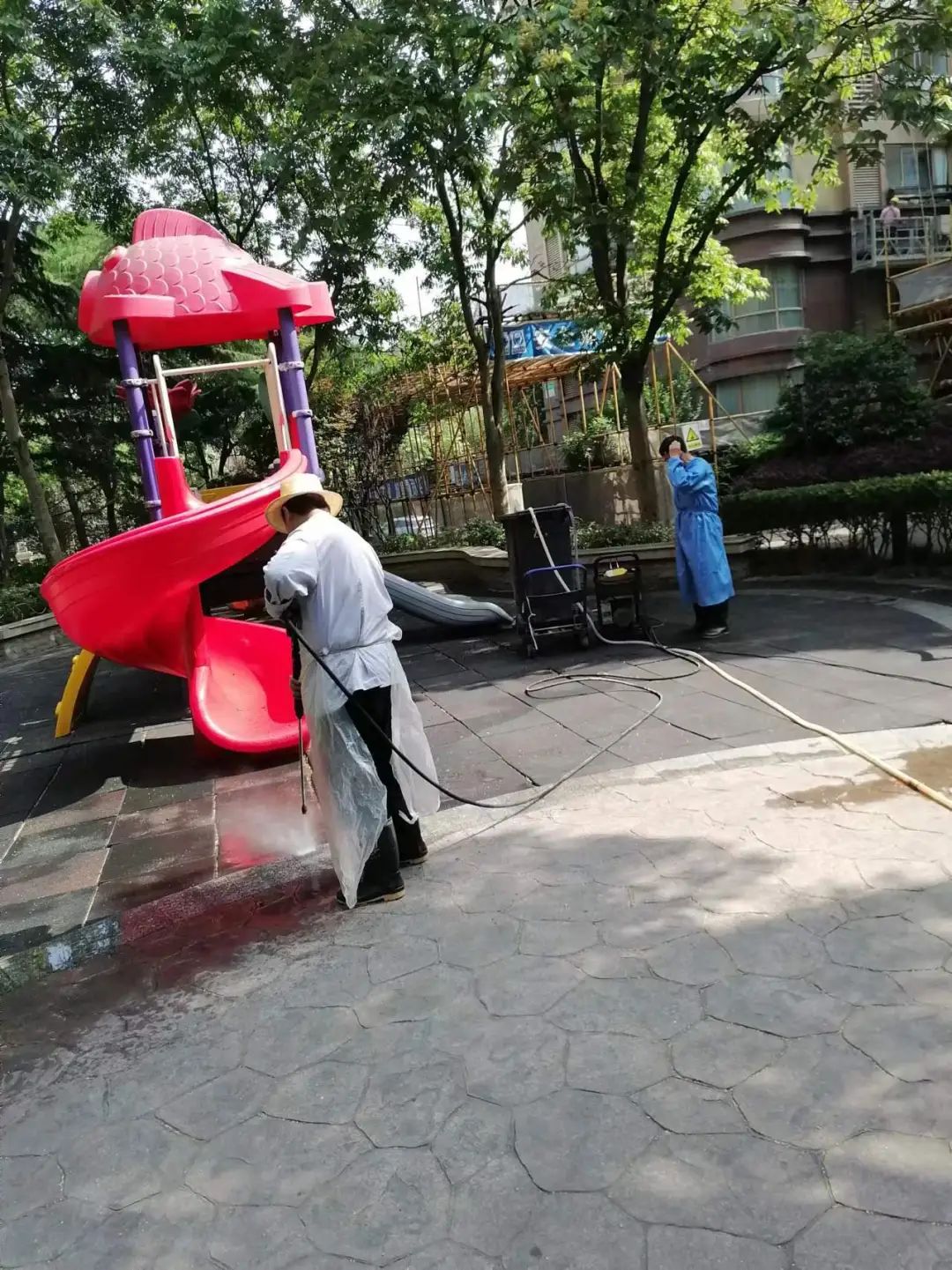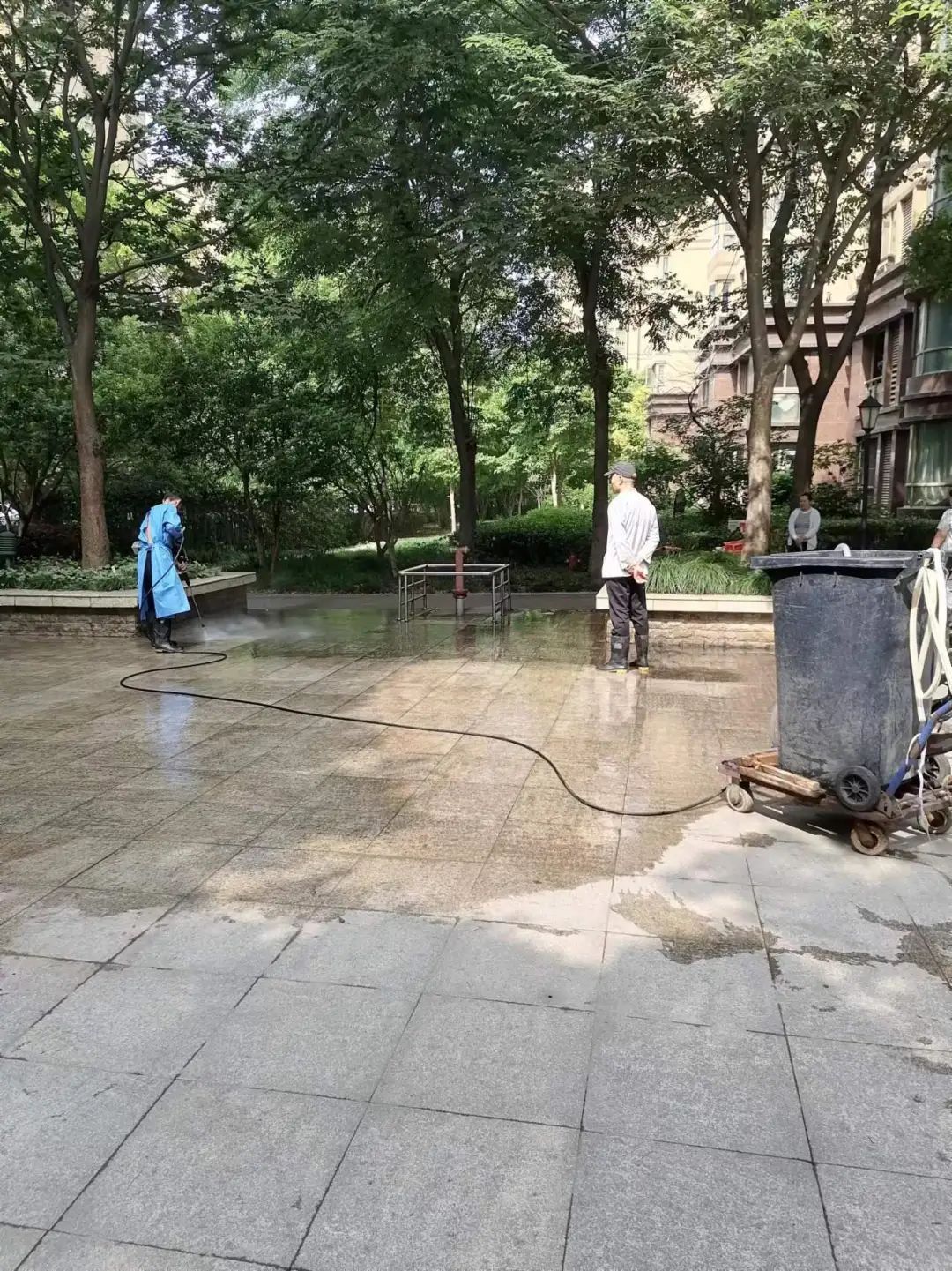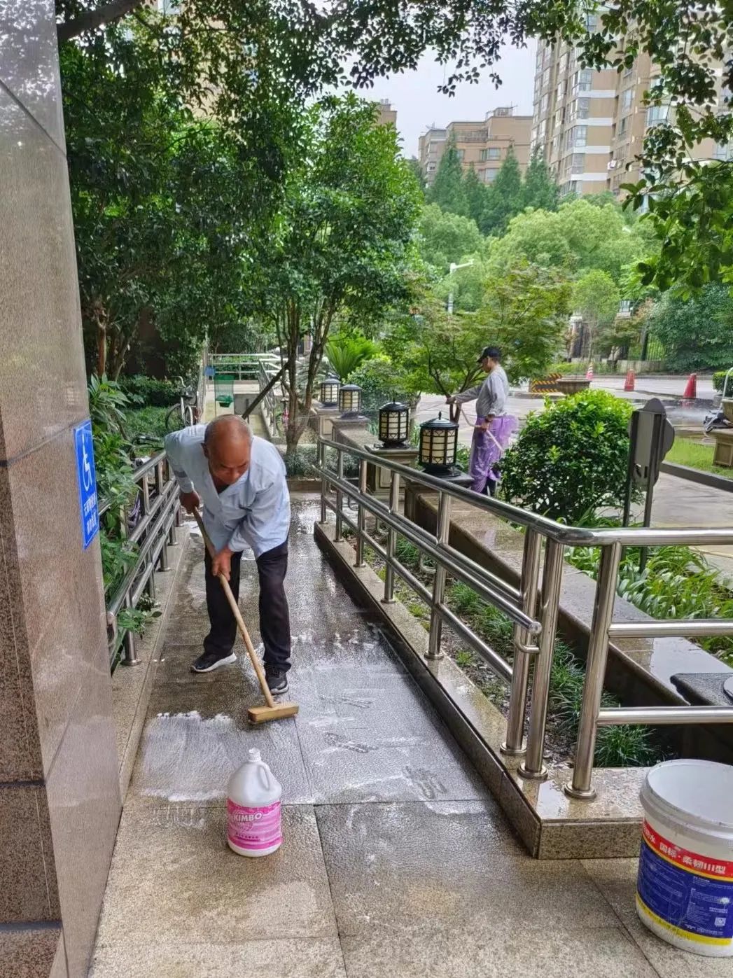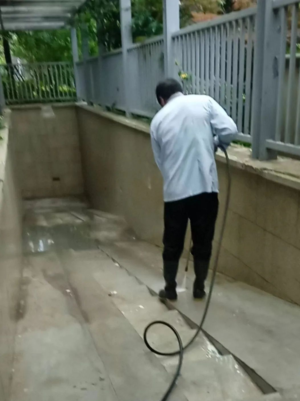 物业人员使用高压水枪深度清洁健身广场、残疾人坡道、儿童公园等公共区域,有效去除水和污渍,提高地面防滑性能。与此同时,他们还对屋顶进行了彻底的清洁,对地下空间的集水井设施进行了仔细的维护,确保下排水系统在暴雨天气下仍能顺利运行,避免雨水倒流。清洁人员每天定期清除地下车库的地面积水。通过努力,提高了社区的整体清洁度,也为居民提供了更加安全舒适的生活环境。