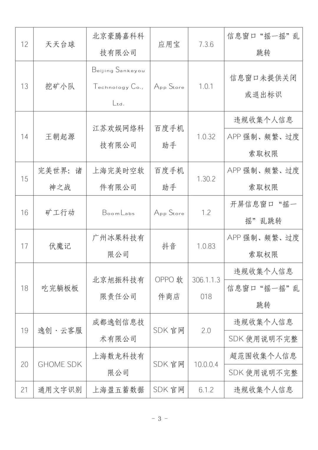截至目前,仍有11款APP未按要求完成整改,现已通知。请于7月4日前完成上述APP开发运营商的整改措施。如果整改措施不到位,将采取下架、关闭、行政处罚等措施。