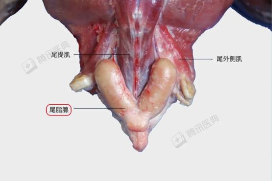 其中一种尖长叫尾脂腺(如下图所示),是禽类特有的一种专门生成油脂的腺管[5],可能会污染肉类的质量。