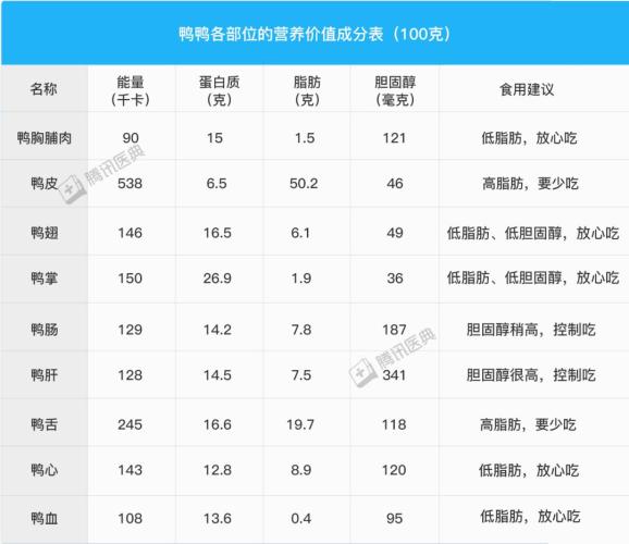 从表中可以看出,鸭掌C位是合适的!蛋白质含量高,脂肪含量低,胆固醇含量低,可以放心咀嚼!