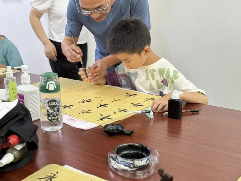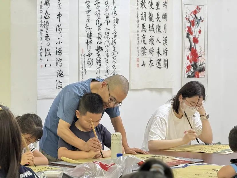 “社区小先生”挥毫泼墨,启航暑假书法体验活动。