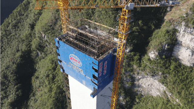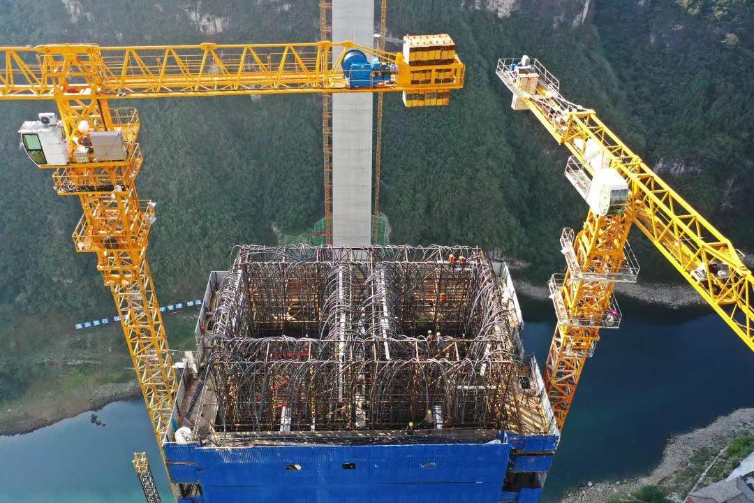 渝湘复线高速矮塔斜拉桥亚洲第一高墩柱于2022年6月29日突破100米。
