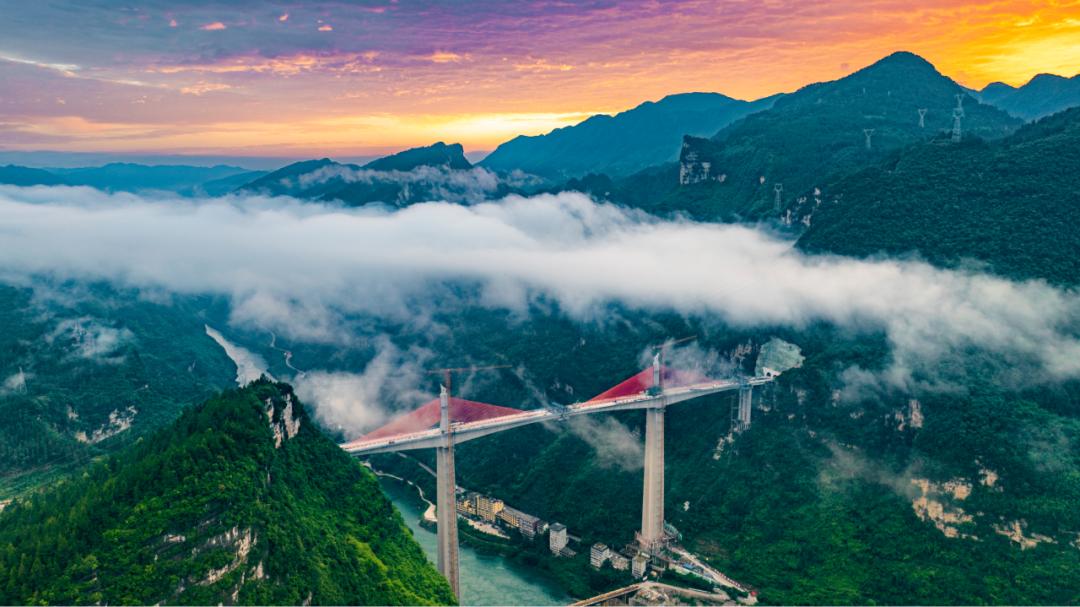 磨寨乌江特大桥于2024年1月3日完成索塔封顶。