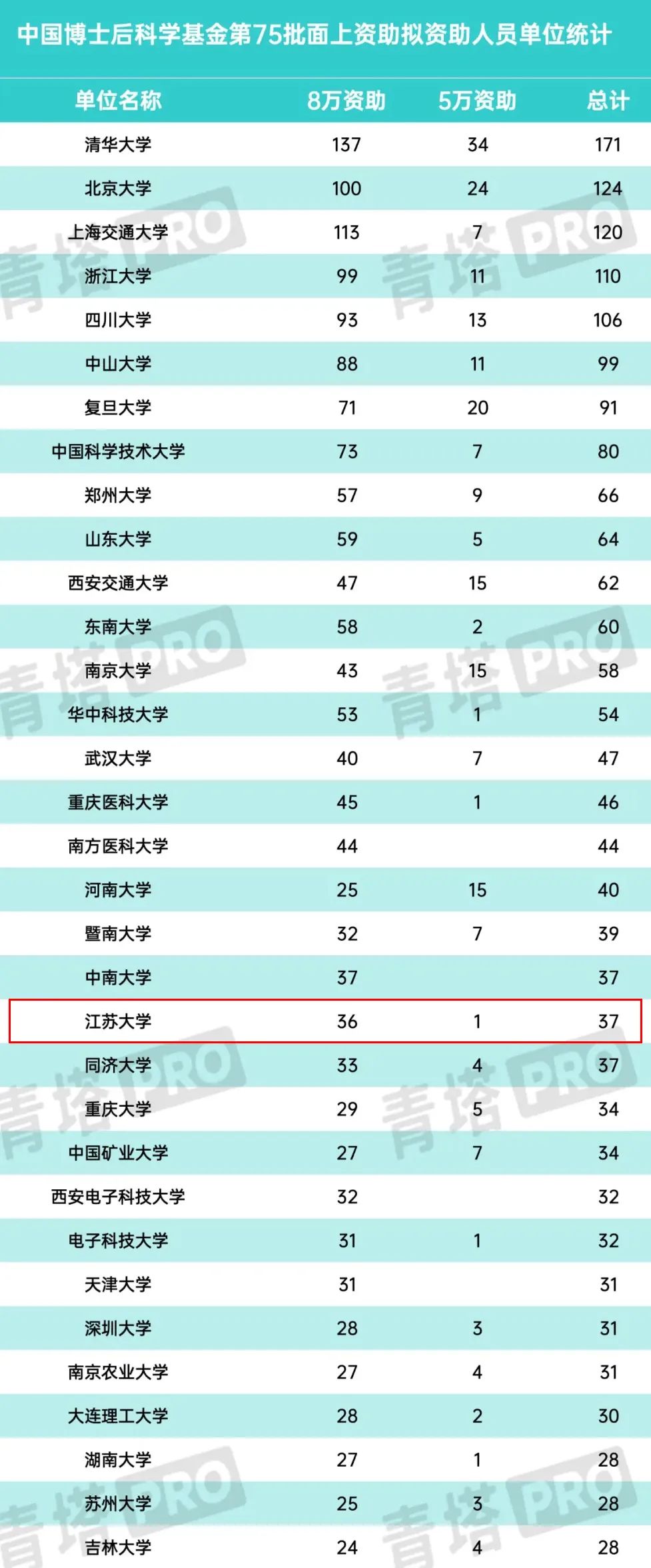 近日,中国博士后科学基金会公布了第75批表面资助拟资助成员名单。江苏大学48名博士后学生获得了这项资助。其中,37人从学校流动站申请获得资助,资助数量位居全国第21。、本省第3;向公司工作站申请11人资助。