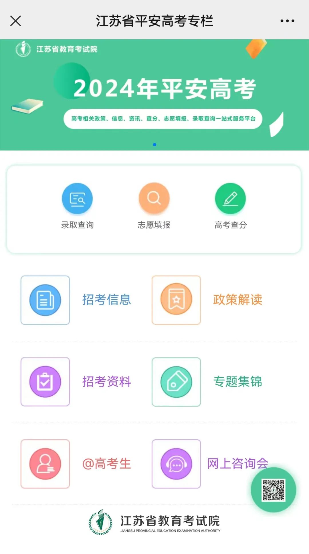 2.通过省教育考试院官方微信微信官方账号查询。考生可关注微信微信官方账号 “江苏招生考试”,点击菜单栏“高考查询-录取查询”按钮,凭考生号码和动态密码卡查询。
