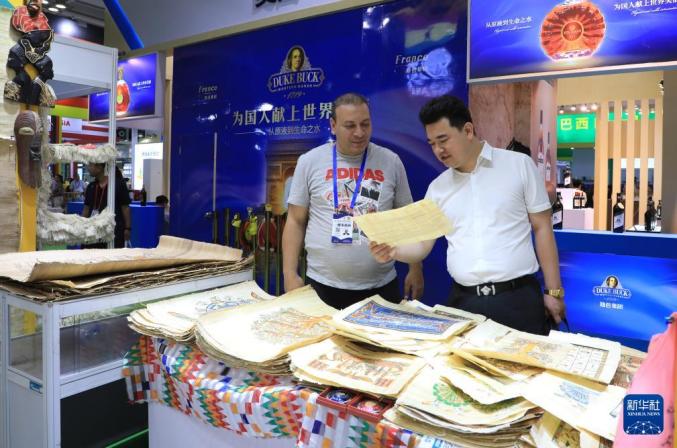 七月六日,在第三十届兰洽会印度尼西亚展台上,参展商向客户介绍了印度尼西亚产品。新华社记者 徐皓夫 摄
