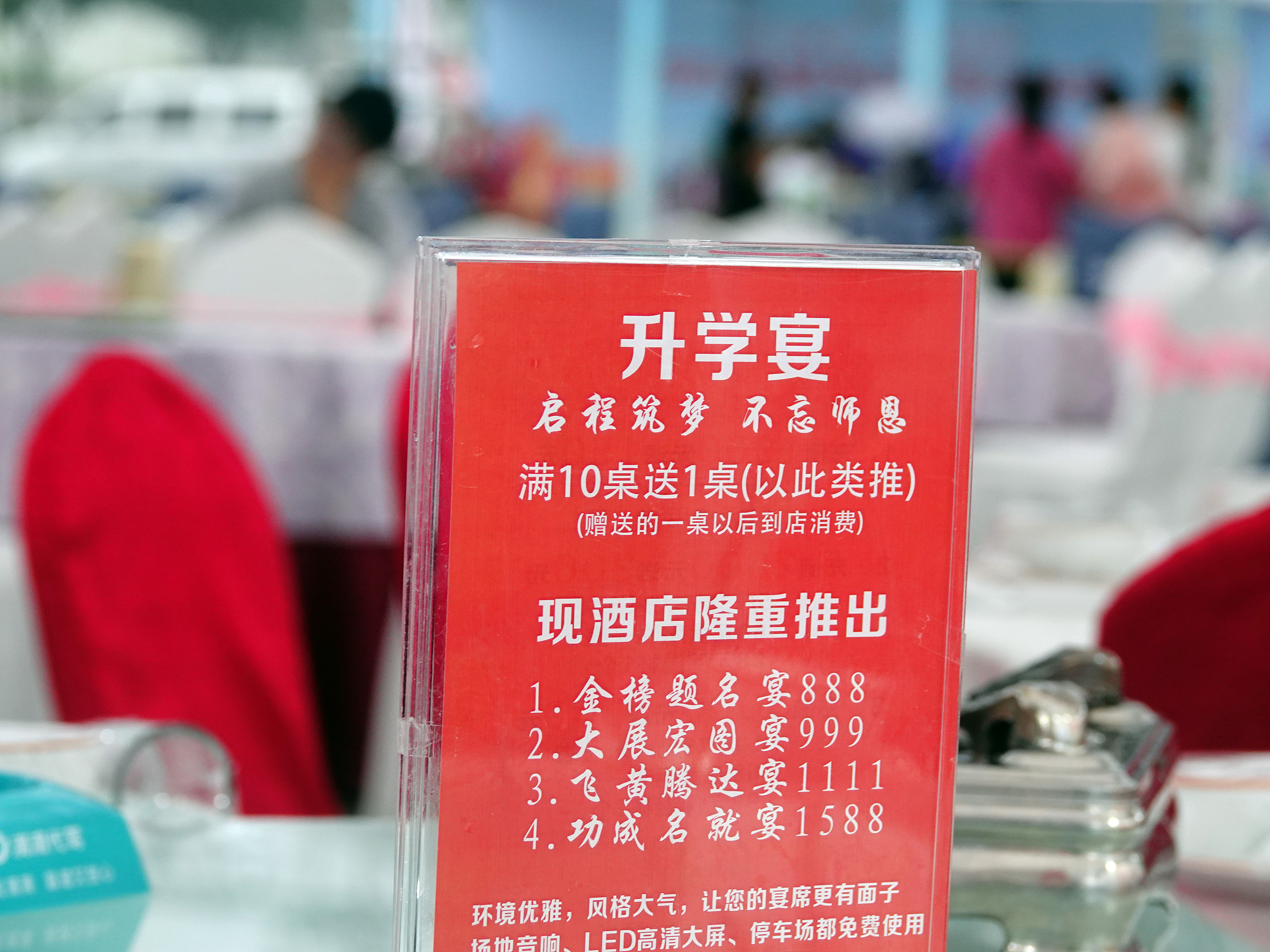 湖北宜昌,2023年6月16日,餐饮企业亮出升学宴招牌。视觉中国 资料图