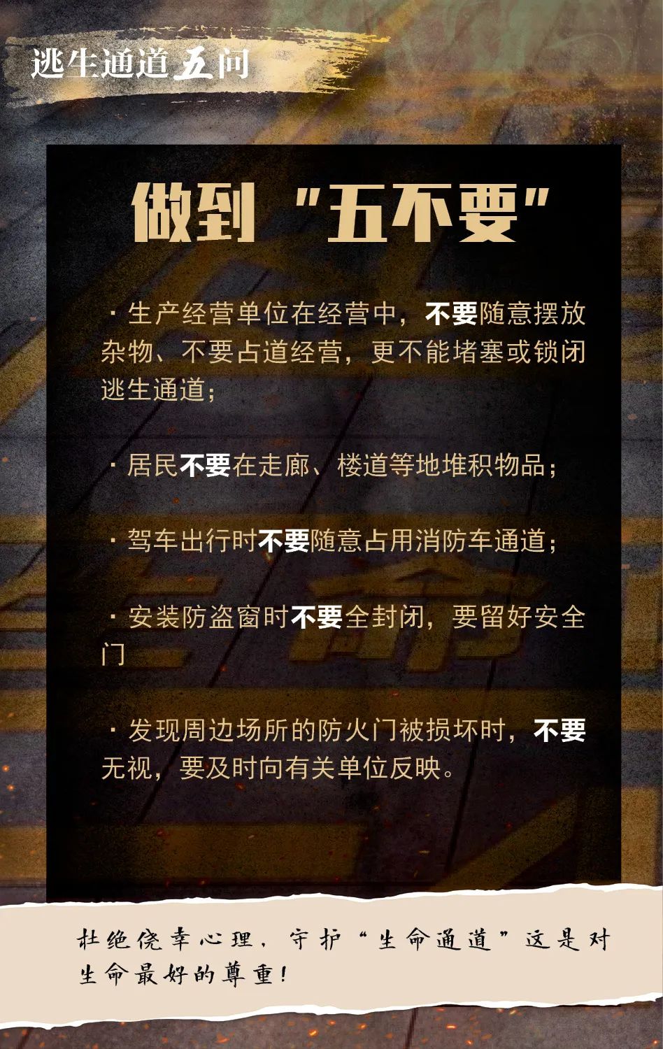保持消防通道、安全通道、疏散通道畅通;不要把杂物堆在电缆井和电梯井里。严禁在走廊停放和充电电瓶车。