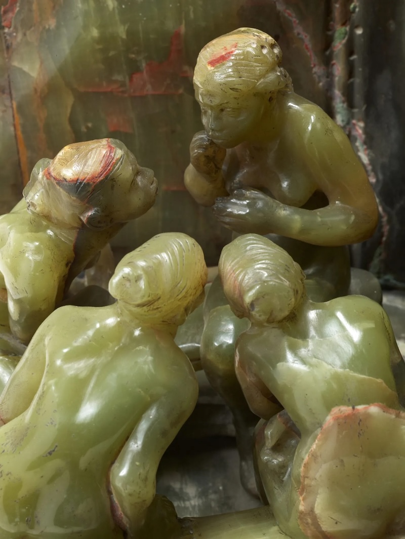 即使卡米耶把自己的角色包裹在旋转的姿势中,比如华尔兹。(The Waltz,大约1900年锻造),雕塑的支撑创造了一个保护性的时刻,使得舞者之间的联系格外紧密。卡米耶对女性生活的描述也使她的作品与罗丹不同。只有她才能在令人惊叹的大理石雕塑《聊天者》中(The Chatterboxes,在1897年)中,对女性的私密世界进行了如此非凡的描述。