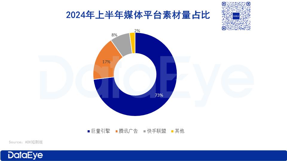 根据投资材料和热值的比例分析:巨型引擎是短剧投资消费的最大平台,2024年上半年投资消费约占73%,腾讯广告约占17%,Aautorapper8%,其他平台约占2%。