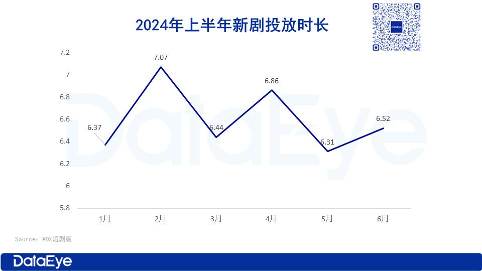 ADX短剧版数据显示:2024年上半年,新剧平均投放时间约为6天,生命周期不长。
