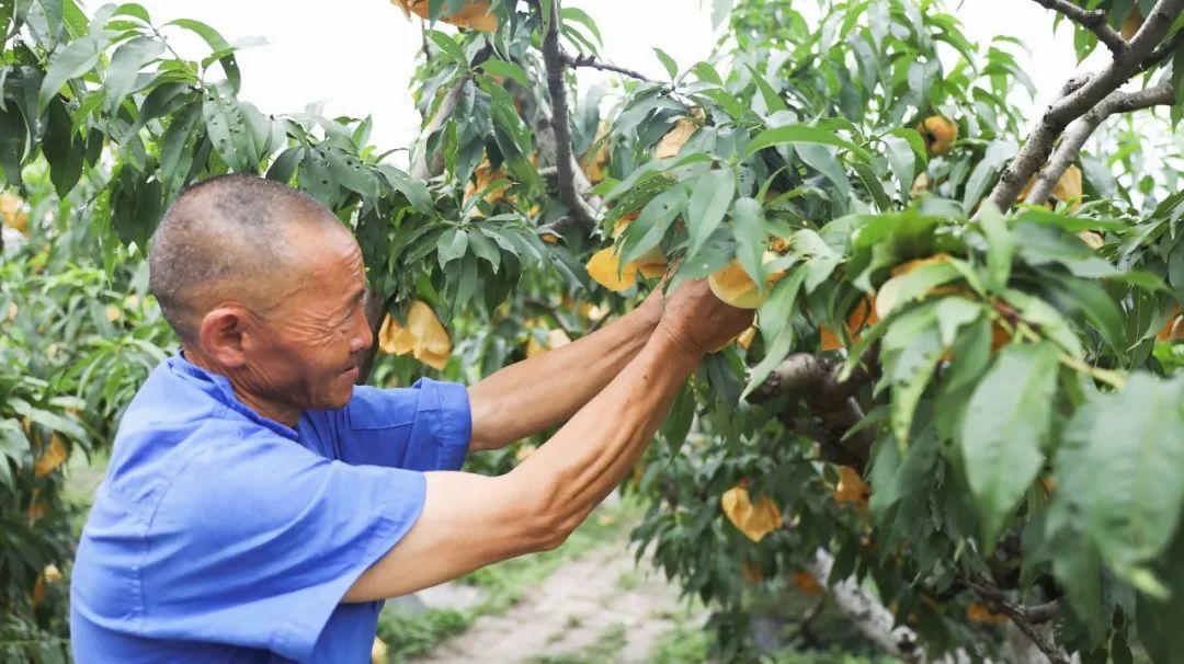 7月10日,记者走进合作社的桃源,环顾四周,一片片果树郁郁葱葱,枝叶繁茂,满满的桃子重重地挂在树枝上,散发出浓浓的果香。黄色的蟠桃在绿叶的映衬下特别吸引人,非常可爱。在桃园里,农民们正在收获成熟的桃子,他们的脸上充满了丰收的喜悦。