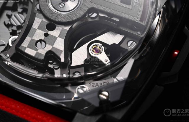 这枚 TH81-00 追针计时机芯由泰格豪雅和 Vaucher 机芯厂是合作开发的,这也说明它与帕玛强尼和 RM 机芯的水平是一样的,这个机芯也是品牌历史上最轻的自动计时机芯之一。