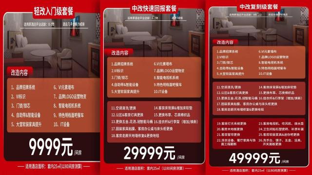 换言之,对于一个月平均单房收入来说, 160 块状存量酒店,经调查符合要求。 3 万元 / 每个房间的改造标准,然后改造成柏曼酒店后,店铺每月平均单间综合收入至少会达到。 200 人民币。以此类推,单房改造费用是 4 万元和 5 万元酒店,相应的综合酒店 RevPAR 增加值分别为 50 块和 60 元。基于这种运营业绩保证体系,柏曼的选择是与投资者共担风险,品牌明确如果改造后当月进行综合。 RevPAR 如果提高低于目标值,则免收当月品牌管理费。" 3 大型改造套餐 2 东呈集团柏曼事业集团总裁王瑜强调,年投资回报周期的业绩被提升为拖底的承诺,不仅是柏曼对改造后业绩增长和快速回报的信心,也是对投资者权益的有效维护。