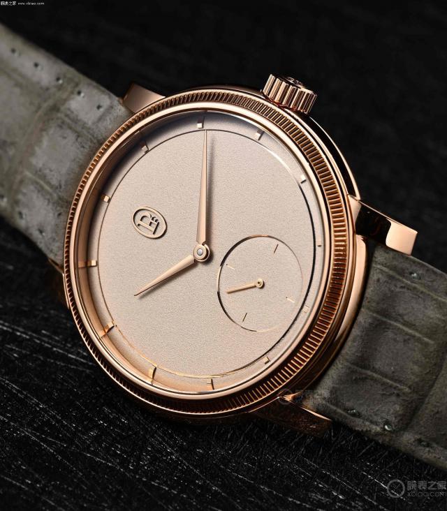 新一代 Toric,外观简单,表圈装饰有滚花。表盘是实金的,看起来像单色表盘。事实上,表盘是用海盐、银、水混合而成的,用作抛光膏,手工抛光颗粒效果。
