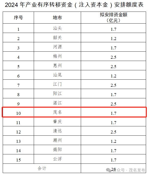 题目:“直接补贴1.7亿!茂名拟获产业有序转移资金”