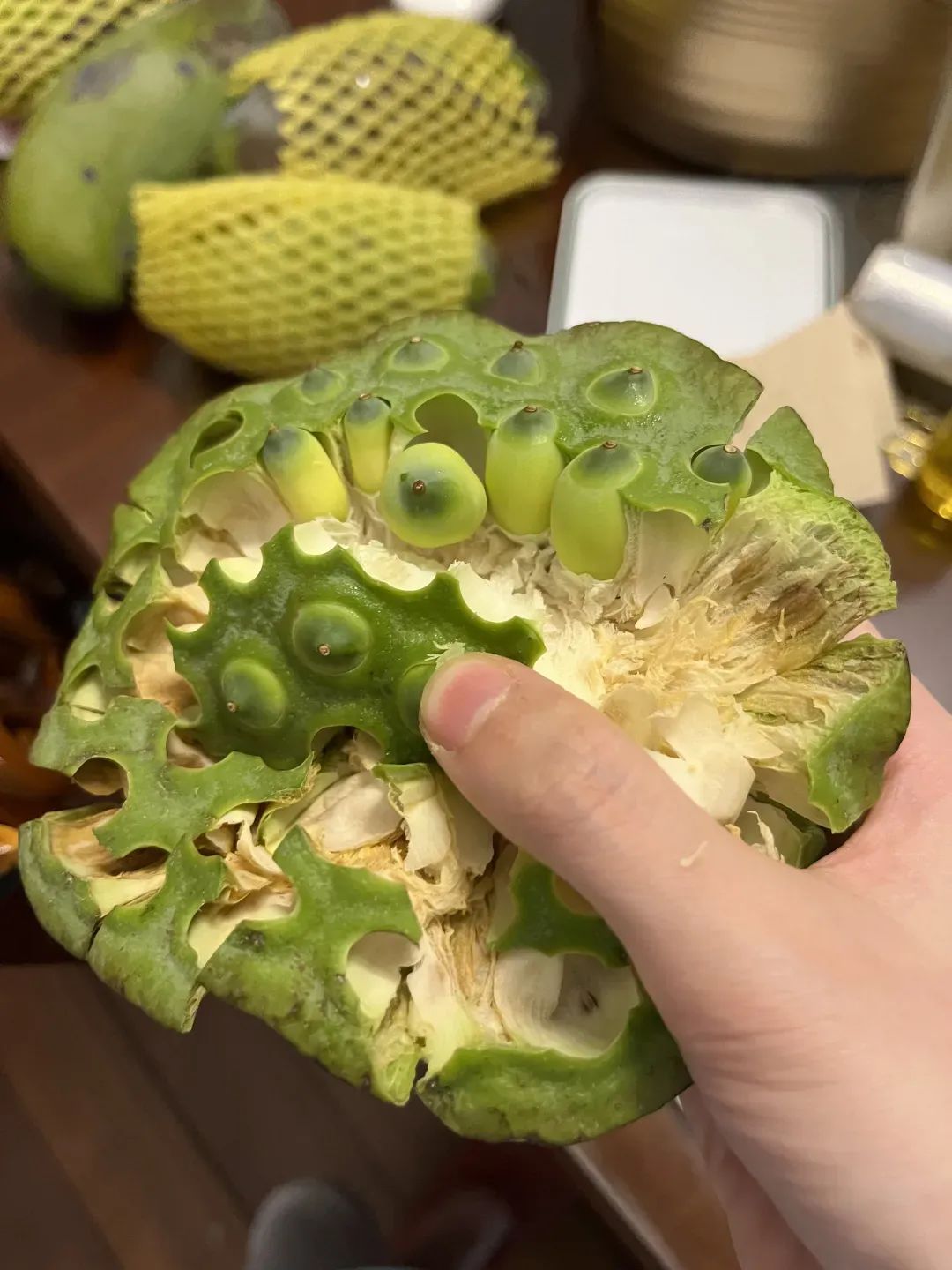 “嫩莲子可以当水果吃。去掉这个绿壳,直接吃。很脆。老莲子在家煮汤。”她说:“我家很想吃,所以我两个都买了,就等老板准备好带回家。”