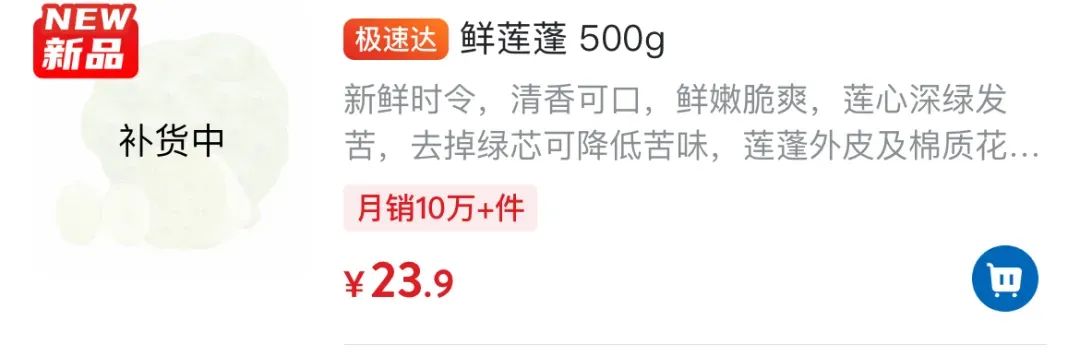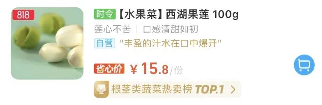 记者还了解到,网上生鲜平台的鲜莲蓬销量火爆。例如,根据山姆会员商店App,23.9元/斤的鲜莲蓬月销量为10万。 ,而且萧山地区已经没有货了。盒马App卖的是剥好的西湖果莲,价格15.8元/100g。;在丁咚购物App上,鲜莲蓬9.89元/150g,鲜莲15.8元/100g。