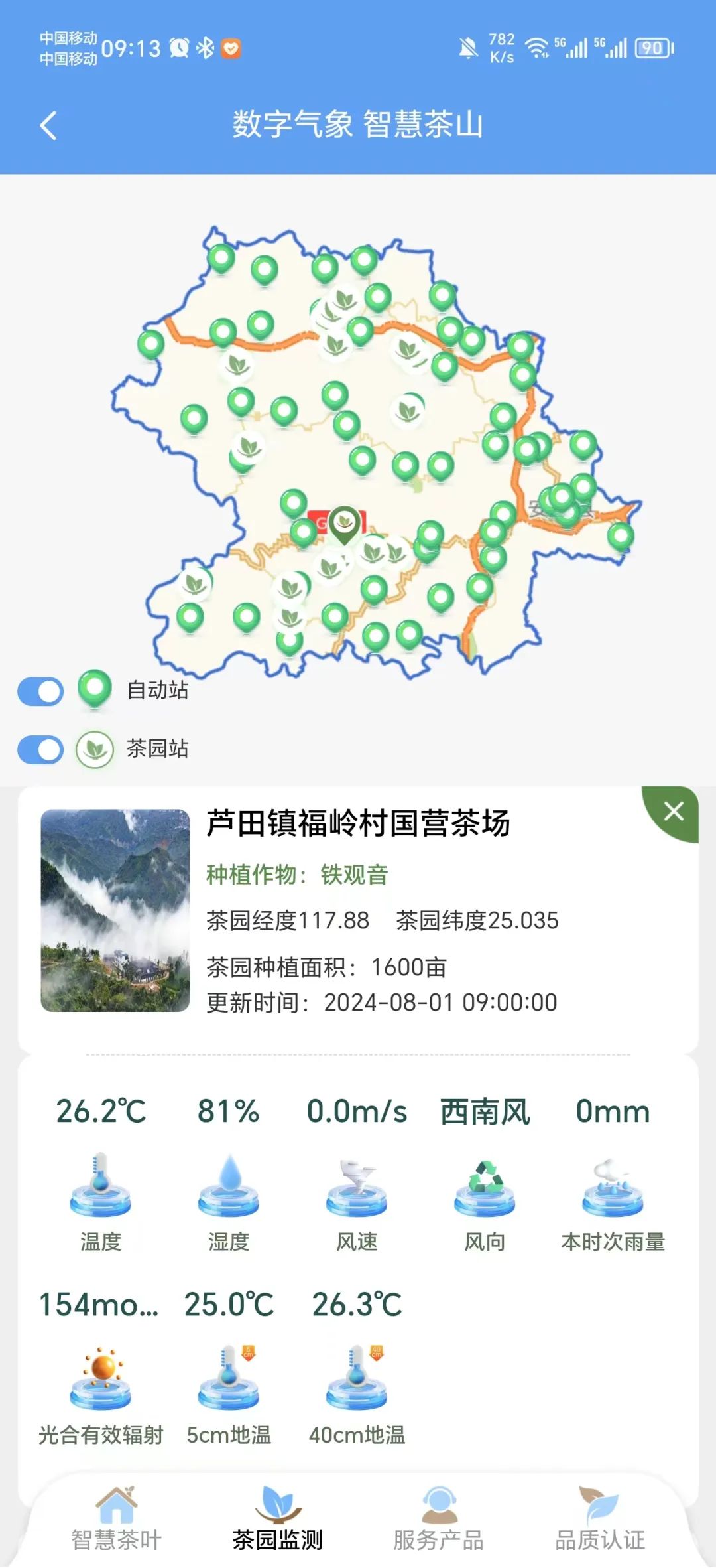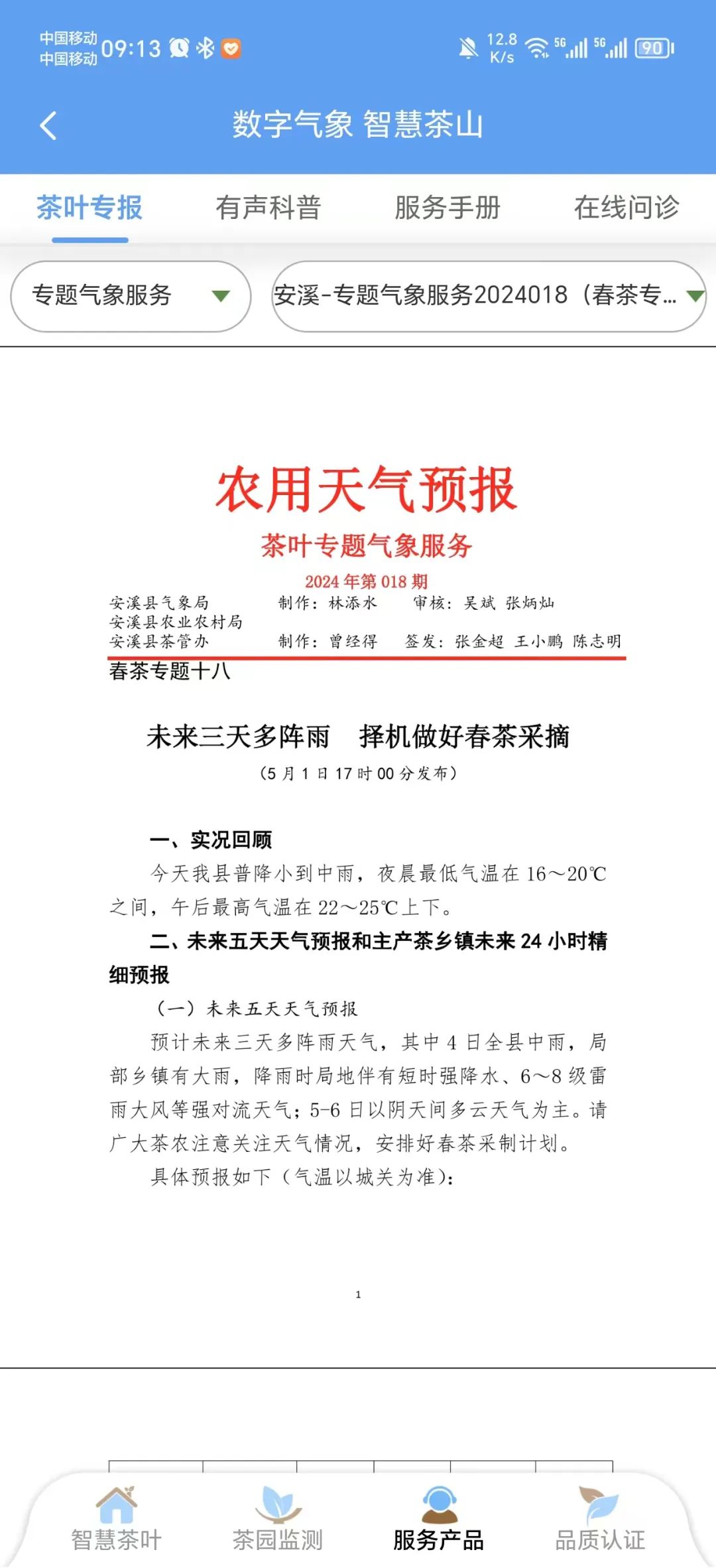 近日,“知天气”App推出了新的智能茶山功能,为茶叶行业的发展注入了新的科技活力。该功能分为四个模块:智能茶叶、茶园监控、服务产品展示和质量认证。提供茶叶专报、音科普、服务手册、在线咨询四项服务,为茶农和茶企提供精细化、个性化的气象服务。