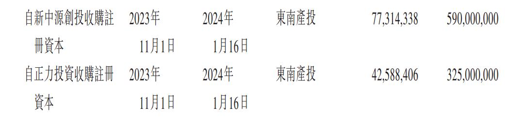 新中源创投和正力投资于2023年11月分别向东南产投出让注册资本7731.43万元,注册资本4258.84万元,各套现5.90亿元和3.25亿元,累计套现9.15亿元。