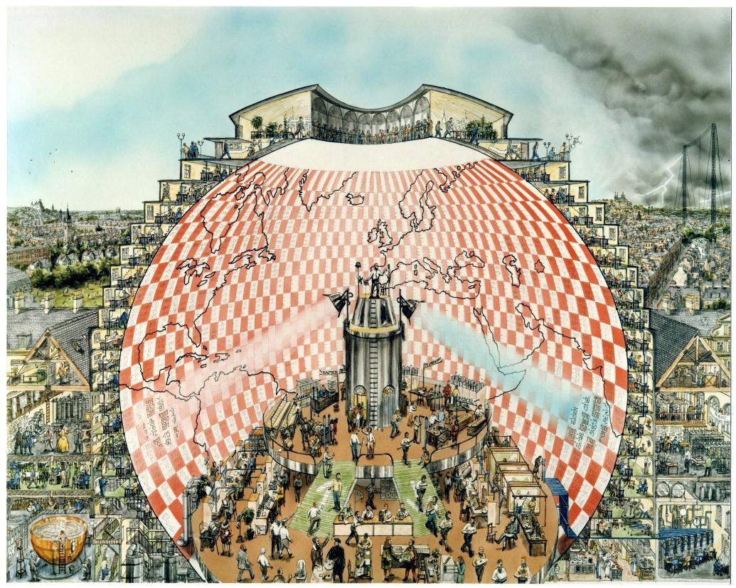 如果你想预测全球天气变化,根据理查森的假设,在一个模仿地球的巨大球形建筑中,地球被划分为许多小区域。每个人负责计算一个区域的天气变化,总共需要 64000 人。