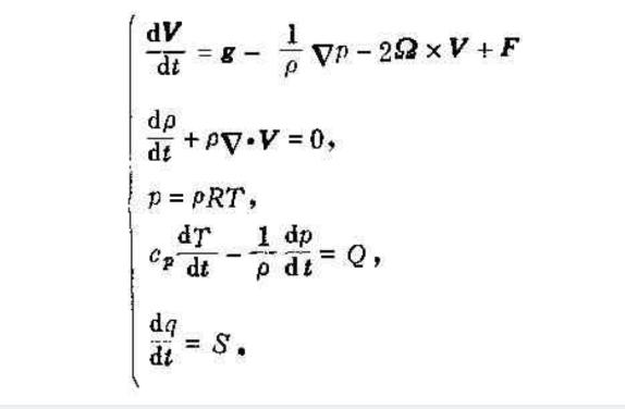 大气运动方程包括运动方程、连续方程、热学方程、水蒸气方程和状态方程。
