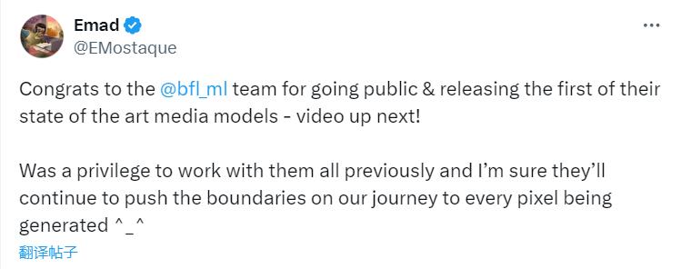 前领导创始团队——Stability AI前CEO埃马德·莫斯塔克(Emad Mostaque)还发了贺电,还说:“以前和他们合作是我的荣幸,我相信他们会在生成每个像素的旅程中继续突破界限。