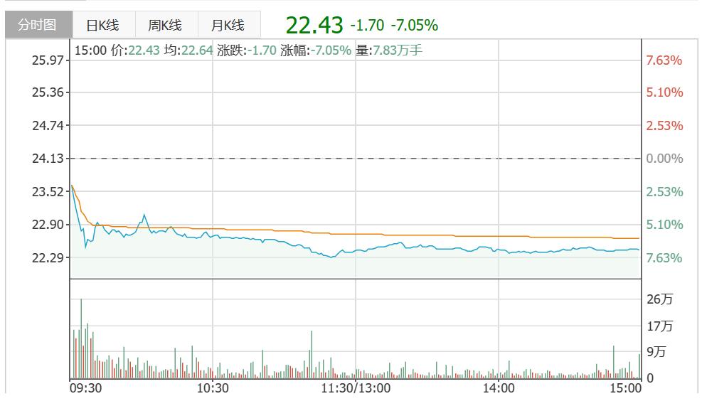 公告发布后收市,每股22.43元,丸美股价暴跌7.05%。