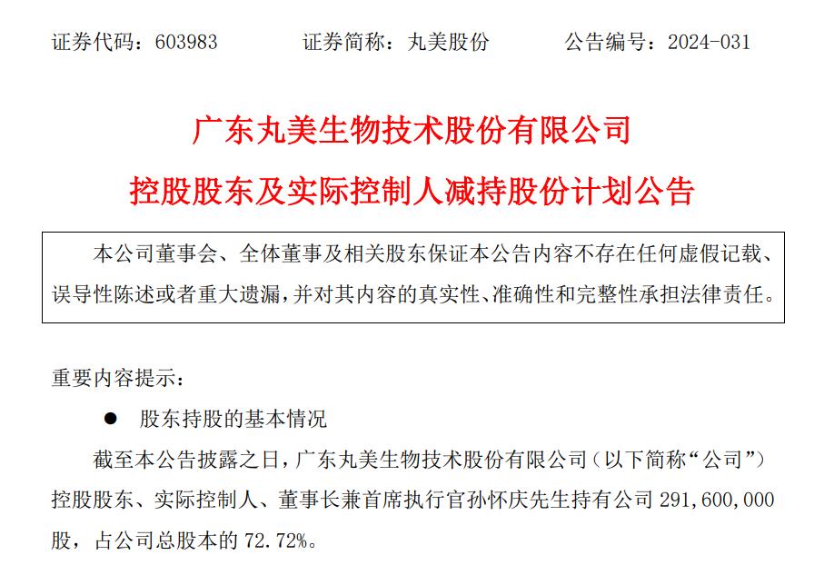 公告显示,丸美控股股东、实际控制人、董事长兼首席执行官孙怀庆计划在2024年8月26日至11月25日期间减持公司股份,总额不超过1203万股,不超过公司总股本的3%。按股价计算,套现金额接近3亿元,而且减持的方式是选择集中竞价,大宗交易。