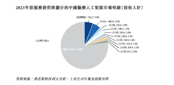 据弗若斯特沙利文介绍,2023年讯飞医疗收入在中国医疗人工智能产业中排名第一,市场份额为5.9%。