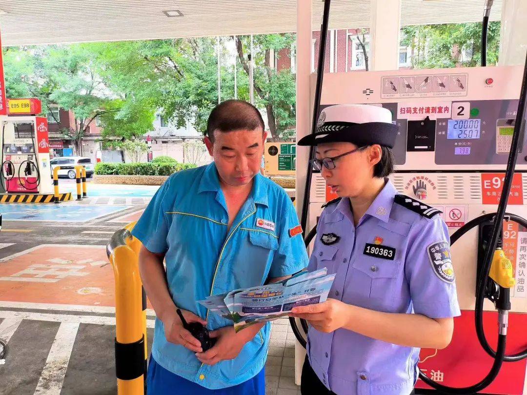 7月30日,交警和平支队泰安道大队交警走进加油站,向站内员工和前来加油的车辆司机进行交通安全宣传,为文明守法出行“给油”,并号召加油站负责人和员工主动与公安交管部门携手,以进一步深化“争当文明有礼天津人”活动,让文明守法的交通理念深入市民心中,增强群众交通安全意识。加强对以往司机的宣传教育,努力提高众多司机在实际工作中的交通安全意识。