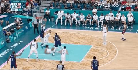 恩比德三分投入,对面立即还一个,再次突破恩比德,美国暂停。