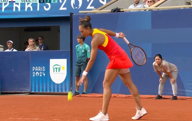 很早就得到了维基奇的发球局。 3 个别局面,又被郑钦文追平,艰难保发成功。轮到郑钦文发球局了。郑钦文持续犯了三个错误,但幸运的是,维基奇也非常激进。他继续回球下网,郑钦文成功发球,4-3 领先!维基奇发球局,两人奋战至今。 40 平,郑钦文强攻逼迫维基奇回球出界,随后双方底线继续多拍僵持,维基奇出界,郑钦文关键破发,5-3 赢得开球比赛!维基奇的心态明显崩溃,强攻拉长。 被郑钦文放短球 郑钦文接发球出界,拿到赛点!最后一分,郑钦文正手直线击败对手,局分。 6-3,总比分 2-0 获得奥运女单冠军,创造历史!