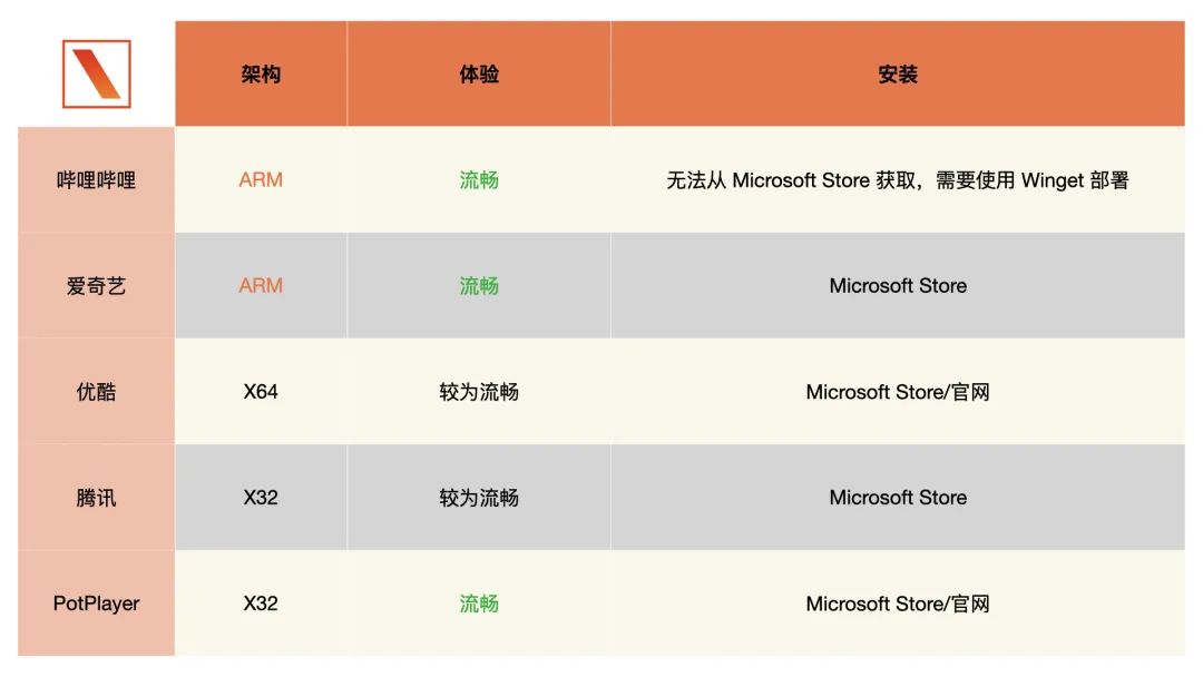 就视频平台而言, 爱奇艺和 哔哩哔哩都开发了 ARM 原生应用,值得表扬;而且腾讯视频和优酷视频都是 x32 版本, 优酷可以正常打开,应用内滚动感觉正常,第一次打开视频播放要等一段时间; 腾讯视频感觉就不那么跟手了。