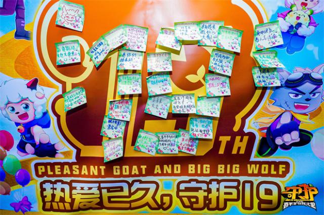 电子海报的限制与电影的经典元素相结合。 19 周年纪念标志,每张海报上还附有电影创作团队亲笔签名的“ To 这些“签名”, To 签名不只是简单的签名,它们似乎是创作者直接向粉丝传达的感谢和祝福。而且,作为《喜羊羊与灰太狼》系列中喜羊羊的代表性声音,当祖晴老师作为神秘嘉宾惊喜出现时,观众们非常兴奋。除签名外,祖晴老师还与粉丝进行了亲密的互动。