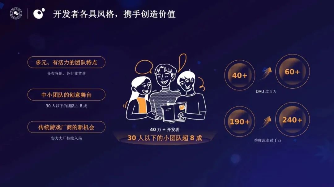 不像APP游戏需要大制作、大投入、精品化,小游戏的门槛比较低,大量的长尾开发者,也可以进入分食收入。