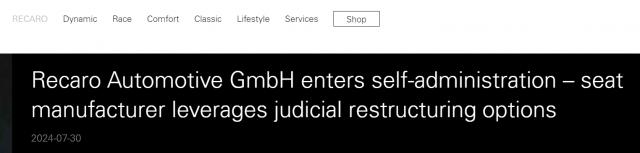 正是这次破产 Recaro Automotive , Recaro 飞机座椅、儿童座椅业务等都没有影响。