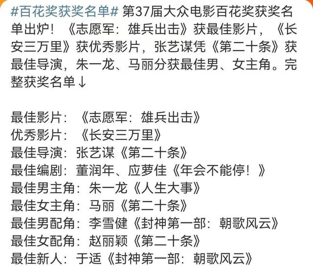 第 37 大众电影百花奖获奖名单公布!获奖演员都是大家熟悉的明星演员,老戏骨!