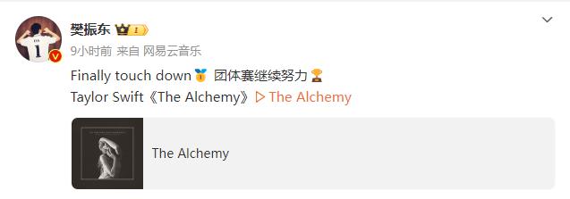 另外,樊振东还在微博上发布了歌星泰勒。 · 一首斯威夫特(霉霉)的歌,祝贺他赢得冠军,并表示他将继续努力参加团体赛。