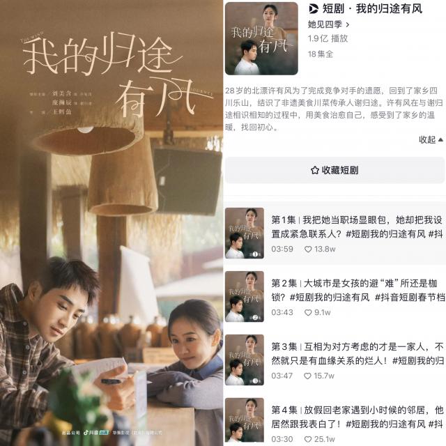 相对于短片,微剧故事的承载能力和创作空间更加广阔,更容易满足文旅传播的深度需要。2024 年初,国家广播电视总局发布了《关于开展“跟随微剧旅行”创作计划的通知》。到目前为止,已经有两批共计。 28 一部优秀的微短剧作品当选创作策划推荐目录,“微短剧” 文化旅游“促消费新模式初具规模。比如《我的归途有风》的播放量 1.9 亿,让四川乐山的美食进入大众视野;《飞扬的青春》播出后,曹村镇在春节期间接待游客。 20 人次。