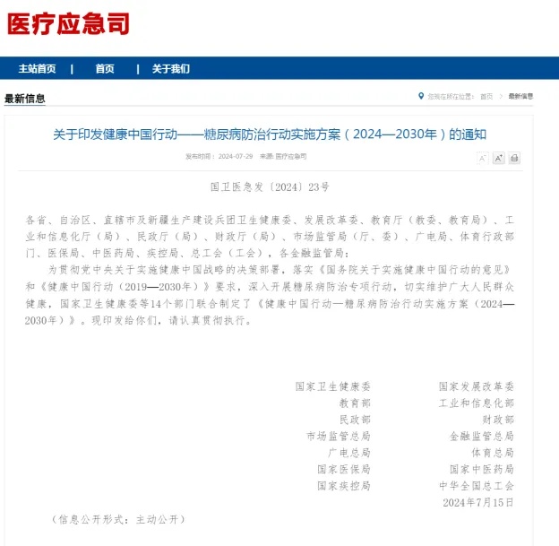 近日,《健康中国行动-糖尿病防治行动实施方案(2024-2030年)》由国家卫生健康委等14个部门联合制定,重点关注9个方面的24项主要措施。